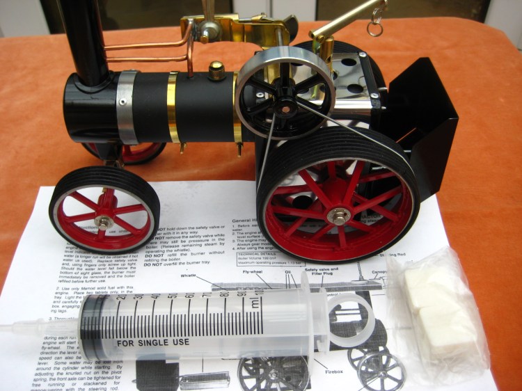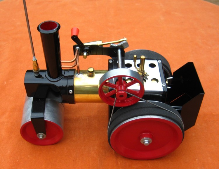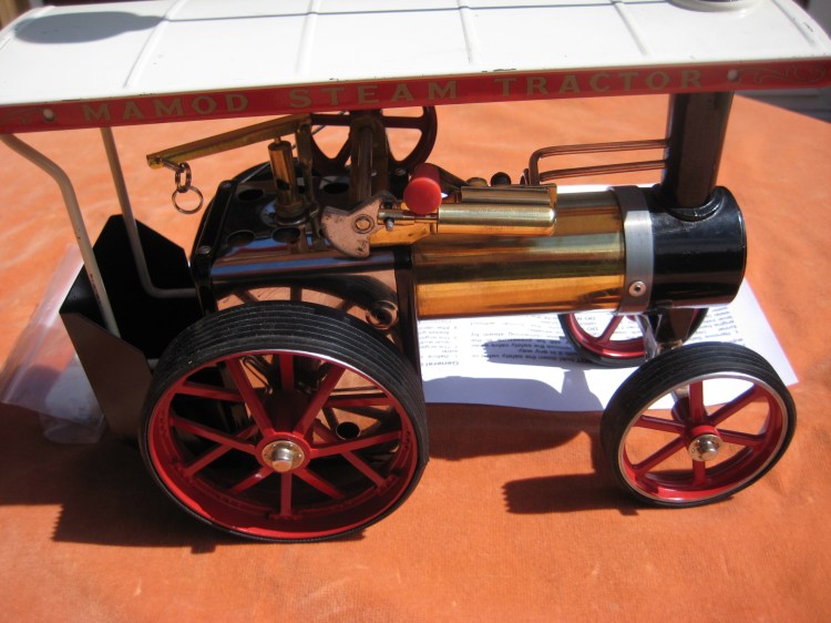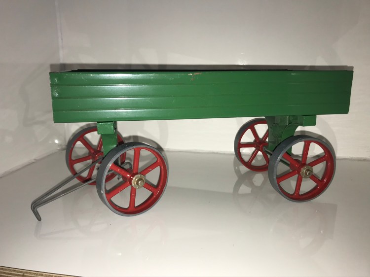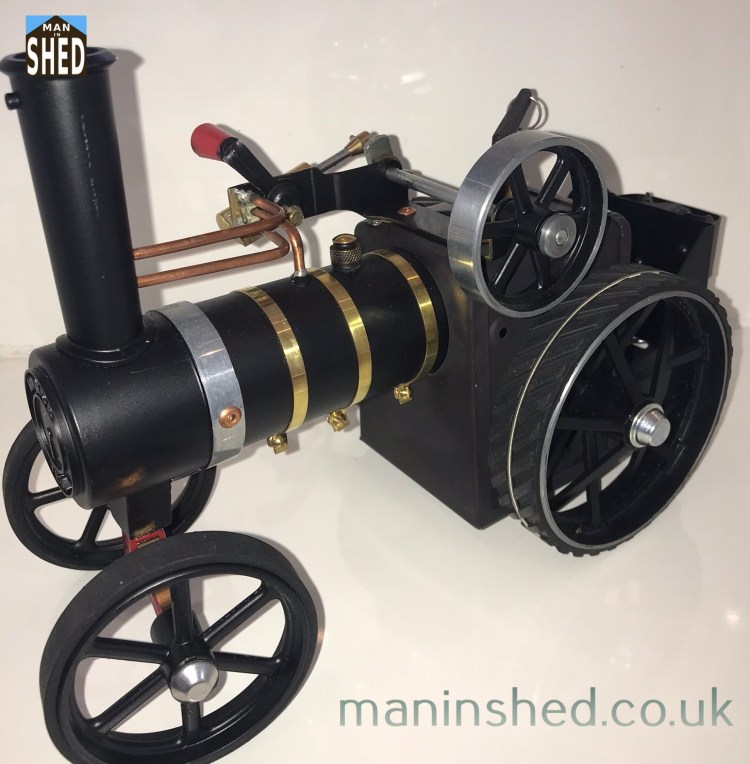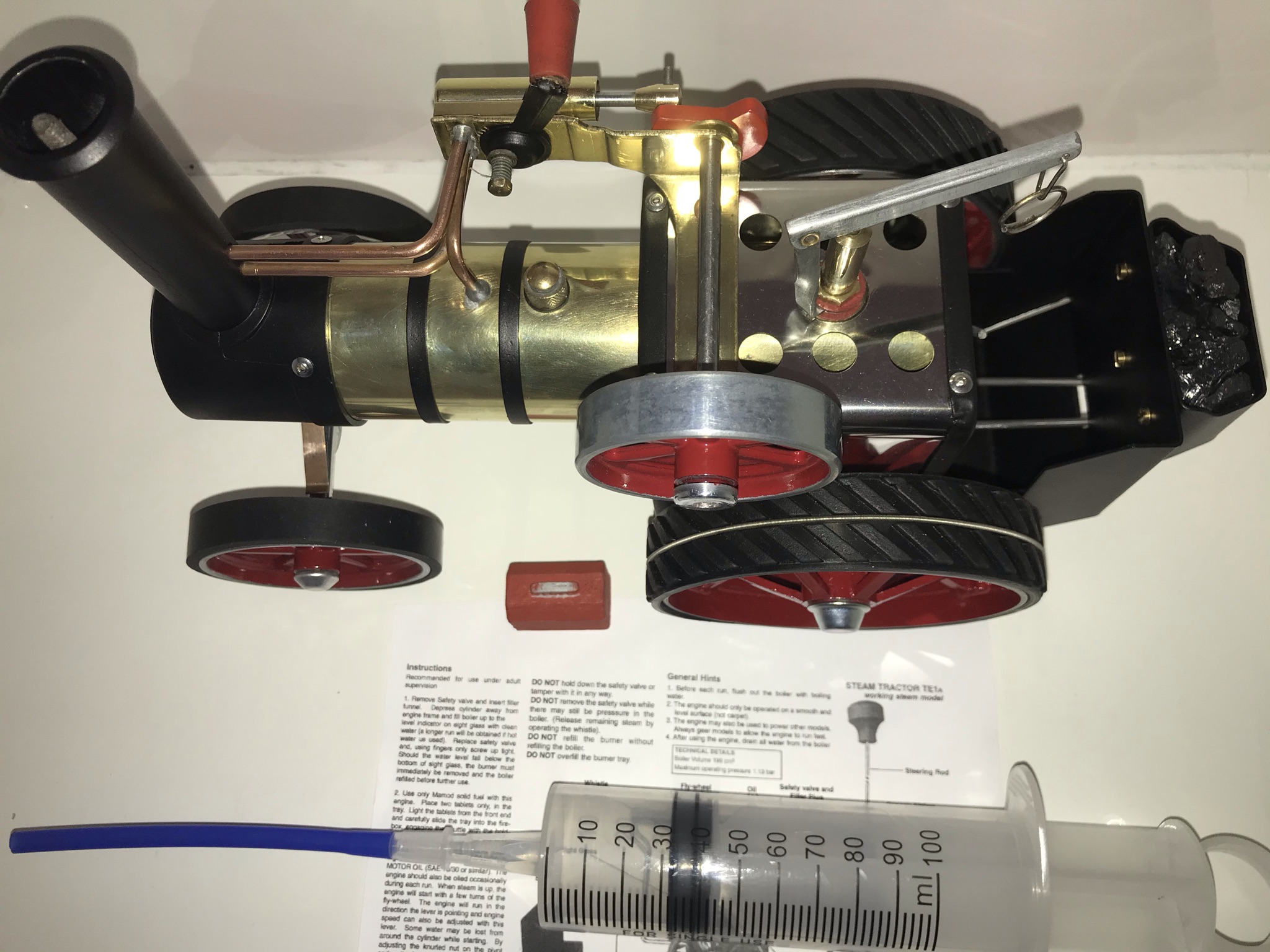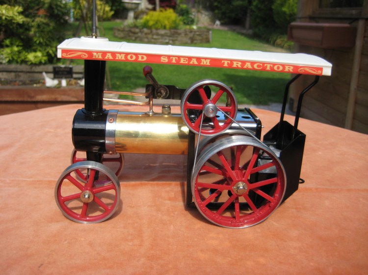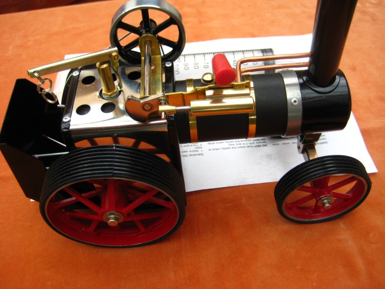 Recently rehomed. Finished with a polished brass boiler set off by matt black and ruby red on stainless steel wheels. Includes coal scuttle and coal.